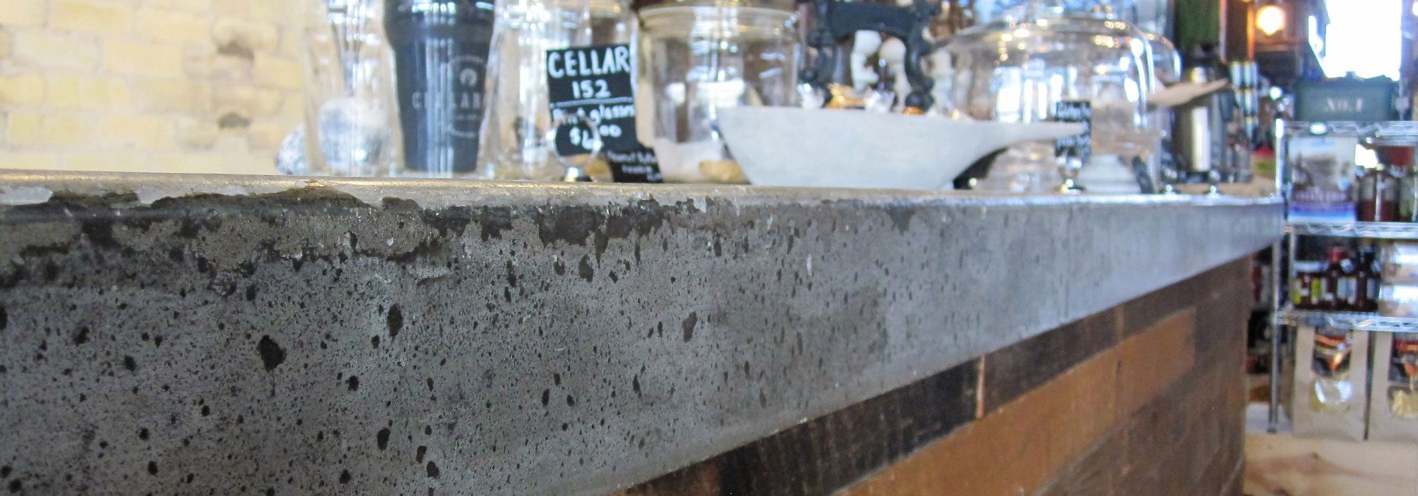 For Cellar 152, a deli and wine market, we used traditional gray concrete complimented by a natural hand finish, which blended well with their modern-rustic barn board themed design.